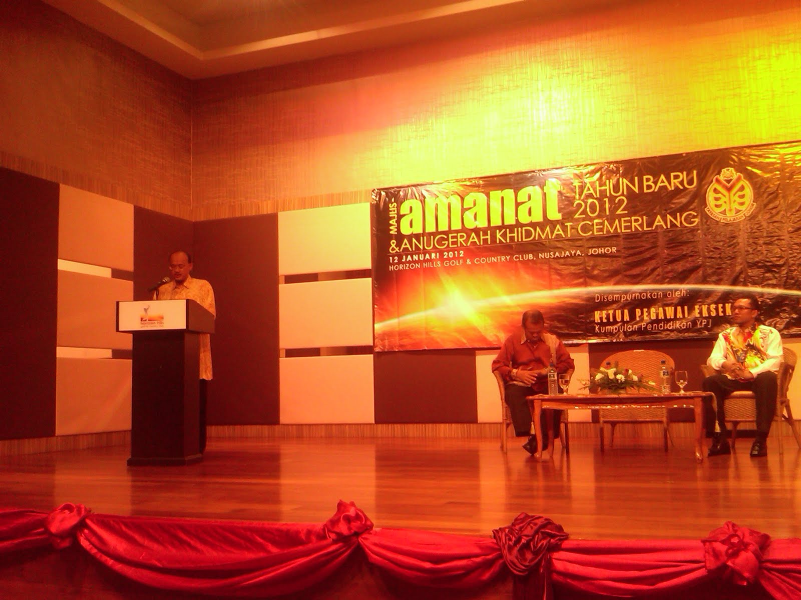 12 Januari 2012 - Semua staff IHYPJ telah menghadiri Majlis Amanat CeO KPYPJ di Horizon Hills Golf Club pada hari ini. Disamping menyampaikan pencapaian setahun 2011, CeO menyampaikan amanat yang sangat berharga kepada semua staff di Kumpulan Pendidikan YPJ. Sebaik sahaja CeO selesai menyampaikan amanat beliau, sebilangan staff telah diraikan kerana kesetiaan bersama KPYPJ, tahap disiplin yang tinggi dan terbaik di dalam jabatan masing-masing.